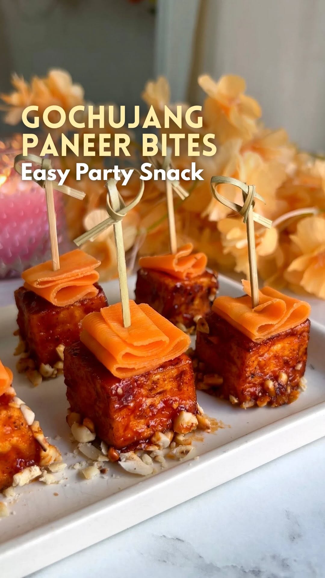 Diwali Bites Ep9 | Gochujang Paneer Bites 🍢 🍢 Recipe : * Start by taking a bowl and mixing 3 tablespoons of corn flour with salt, pepper, and chilli powder. Coat thick paneer cubes evenly in this mixture on all sides, then shallow fry them in a pan until golden and crisp. * In another pan, heat 1 tablespoon of sesame oil and add 2 tablespoons of gochujang paste. Add a dash of water and mix until the paste is smooth. * Stir in 1 teaspoon of soy sauce, 1 teaspoon of vinegar, 1 teaspoon of honey, along with some salt and pepper to taste. Cook this until it turns into a smooth, glossy sauce. * Add the fried paneer cubes into the sauce and mix well so they are coated evenly. To serve, place some crushed roasted peanuts at the bottom of the serving dish and arrange the paneer on top. . . . . gochujan paneer bites | Korean party starter | korean snack recipe | easy paneer starters for Diwali | Diwali party snacks vegetarian | easy Diwali snacks recipes | festive snack recipes vegetarian | vegetarian protein snacks | quick Diwali appetizers | air fryer Diwali snacks | healthy Diwali recipes | easy Indian festive starters | easy Indian starters for Diwali | food bloggers | food content creators in delhi | paid collaborations | ugc content creator | ugc content | ugc creator for food | food ugc content creator cooking videos | food videos | food collaborations | recipe videos | PR | PR collaborations | diwali collaborations | diwali recipes | diwali content | kitty party snack recipe #PoseandPlaces #trending #explorepage #foodreels #gochujangpaneer #koreansnacks #VegetarianSnacks #ProteinSnacks #HealthyRecipes #QuickSnacks #AirFryerRecipes #EasyVegRecipes