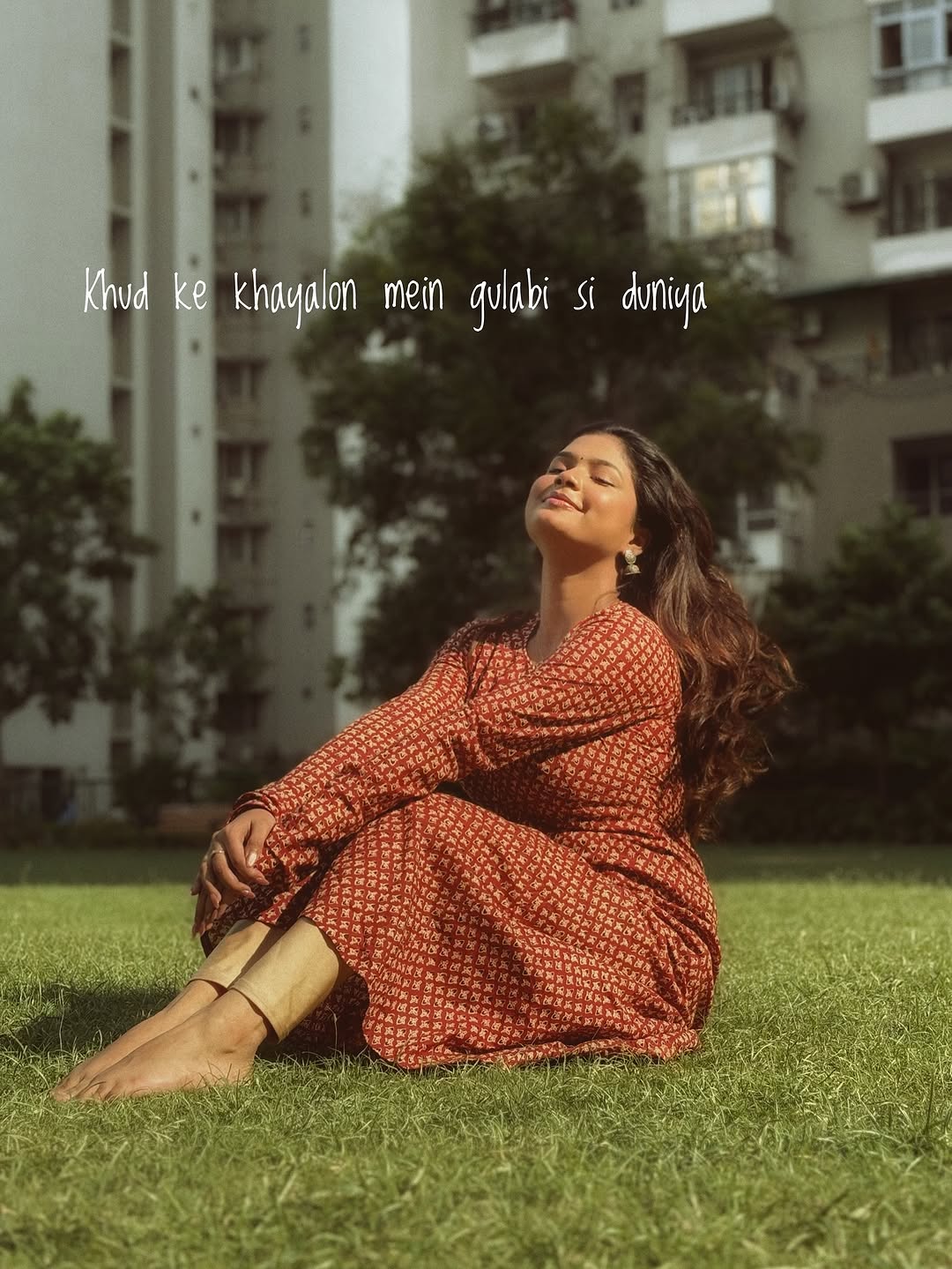 Suraj ki roshni aur tumhari yaadon ka rang… dono mujhme ghul gaye hain ☀️🌷 #soft #bengali #delhi #vintage #vintagestyle #kurti #jhumka #love #selflove #pretty #bindi #kuchnakaho