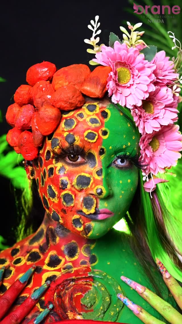 “Two worlds, one face — fire and earth in perfect balance.” Mua- @gogorgeouswithmuskan #oraneinternational #orane #oraneinstitute #oraneinternationalnoida #post #fatasy #fatasymakeup #tredingreels #trendy #virelpost
