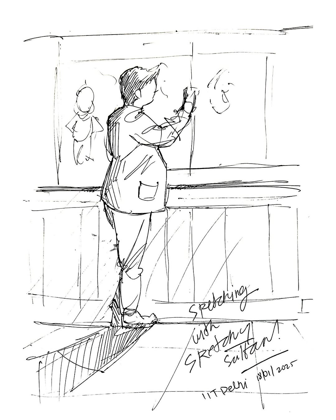 A cherished hand made sketch of me drawing cartoons at @literati.iitd by @satan_navi Totally loved it, goes into my collection and stays forever (maybe) on the feed. #sketch #livesketch #sketchysultaan #personalisedgifting #artistsoninstagram #indiandoodler #indiancartoonist #comicart