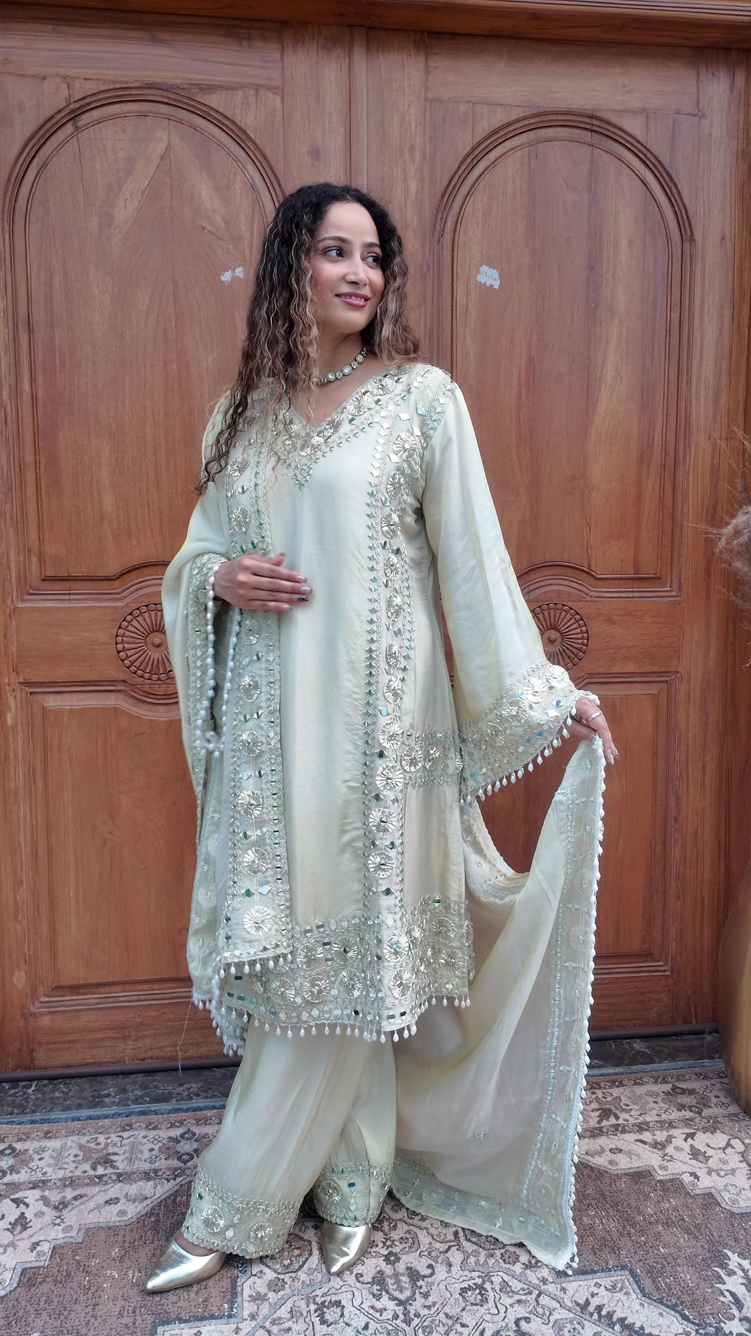 BOOK YOURS NOW🌙 Like a moonlit sea and her shimmering shells✨ This white mirror work suit adorned with pearls is a whisper of elegance and lustre✨💖 . . . . . . . #mırrorwork #gurgaonblogger #newcollection #newdesign #partywearsuits #highend #embroided #indianethnicwear #designinspiration #desginerwear