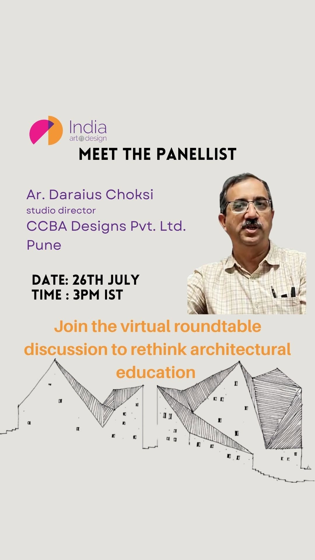 “Architecture is both legacy and change.” As Studio Director at the esteemed CCBA Designs, Ar. Daraius Choksi brings decades of academic and professional insight to our virtual roundtable on Architectural Education – Bridging the Gap between Theory & Practice. Catch a glimpse of his perspective in this short clip—as we count down to a critical dialogue on the future of architecture in India. 🗓️ 26 July 2025 ⏰ 3 PM IST 📍 Streaming Live on LinkedIn Attend at #linkinbio #ArchitecturalEducation #DesignThinking #ArchitectureIndia #CCBADesigns #TheoryAndPractice #IAnDRoundtable #ArchitectureDialogue