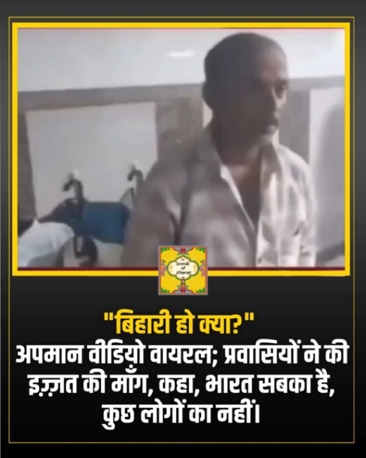 📰 “Bihari Ho Kya?” — A Viral Insult That Exposes a National Bias A seemingly casual slur — “Bihari ho kya?” — hurled at a street vendor has set social media ablaze, but this time, not for the usual reasons. It wasn't just a taunt; it was a mirror reflecting the deep-rooted prejudice and classist mindset still prevailing in many parts of Bharat. The video, now viral, shows a local woman confronting a migrant vendor with disdain, using his Bihari identity as an insult. But what was meant to humiliate has now ignited a powerful response from across the nation. 📢 “Yes, I am Bihari — and I feed your cities, lay your bricks, clean your streets, and power your economy,” says one viral comment. From Mumbai to Delhi, migrant workers and their allies are speaking out — not in anger, but in assertion: We don’t migrate for luxury. We migrate to survive. To serve. To build. Yet, time and again, we are treated as outsiders in our own land. This incident has reopened a long-standing conversation about regional discrimination, migrant dignity, and who gets to claim the idea of “belonging” in Bharat. 💬 “Bharat belongs to all, not just some. We are not guests here — we are citizens. Don’t divide what unites us,” said a youth leader in a solidarity march in Patna. In a time when the country boasts about unity in diversity, moments like these remind us how far we still have to go. It's not just about a street argument anymore. It’s about identity. It’s about dignity. It’s about justice. Follow @moodsofbharat 🇮🇳 #biharnews #bihar #newsupdate #bharat #equally #BreakingNews #question #explorepage