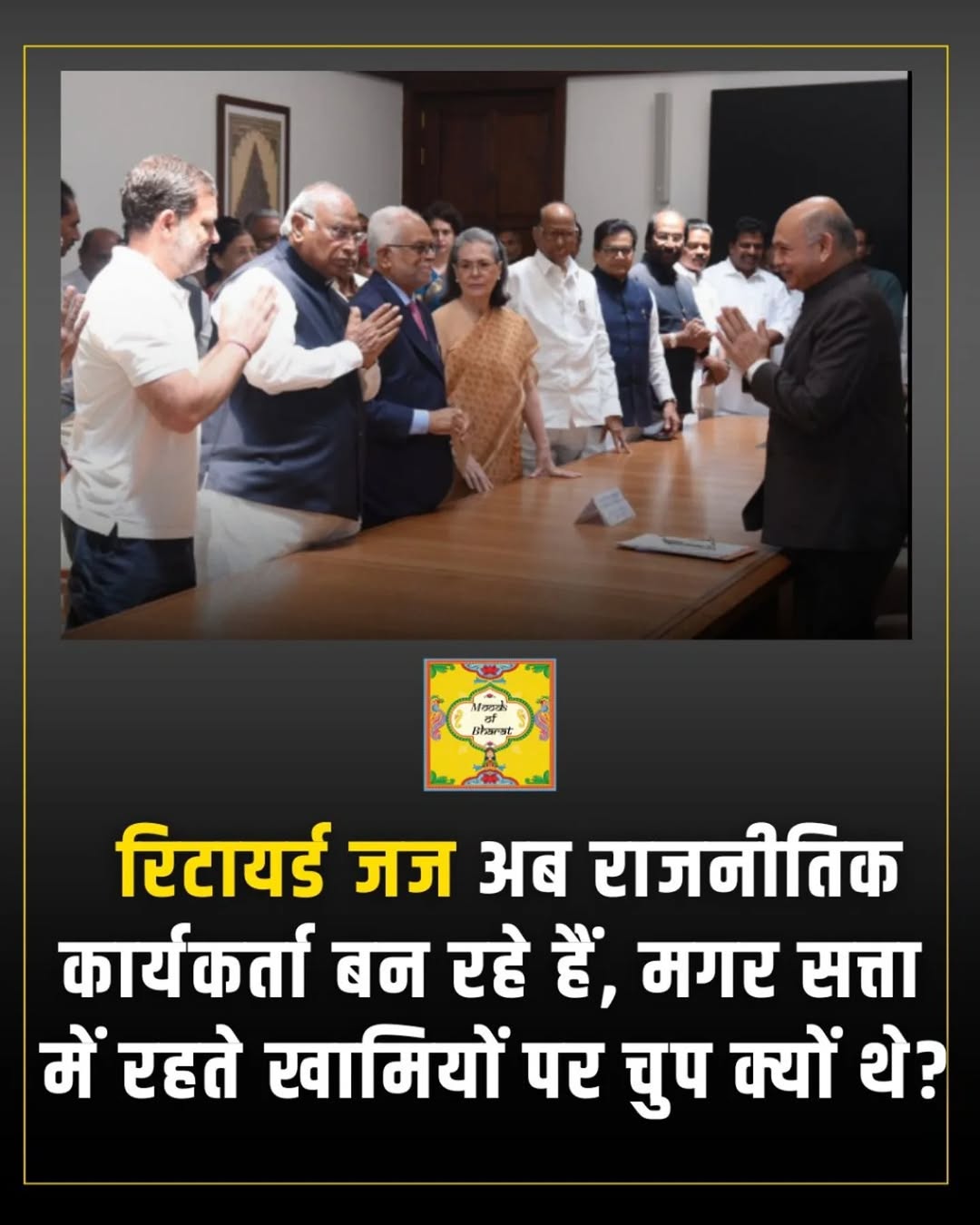 This post was published on 29th August, 2025 by Aditi on her Instagram handle "@moodsofbharat (𝐌𝐎𝐎𝐃𝐒 𝐎𝐅 𝐁𝐇𝐀𝐑𝐀𝐓 | 𝐀𝐃𝐈𝐓𝐈 𝐃𝐀𝐃𝐇𝐈𝐂𝐇)". Aditi has total 50.8K followers on Instagram and has a total of 423 post.This post has received 266 Likes which are lower than the average likes that Aditi gets. Aditi receives an average engagement rate of 0.92% per post on Instagram. This post has received 4 comments which are lower than the average comments that Aditi gets. Overall the engagement rate for this post was lower than the average for the profile. #newsfeed #NewsAlert #explorepage #news #newsindia #judges #newstoday has been used frequently in this Post.