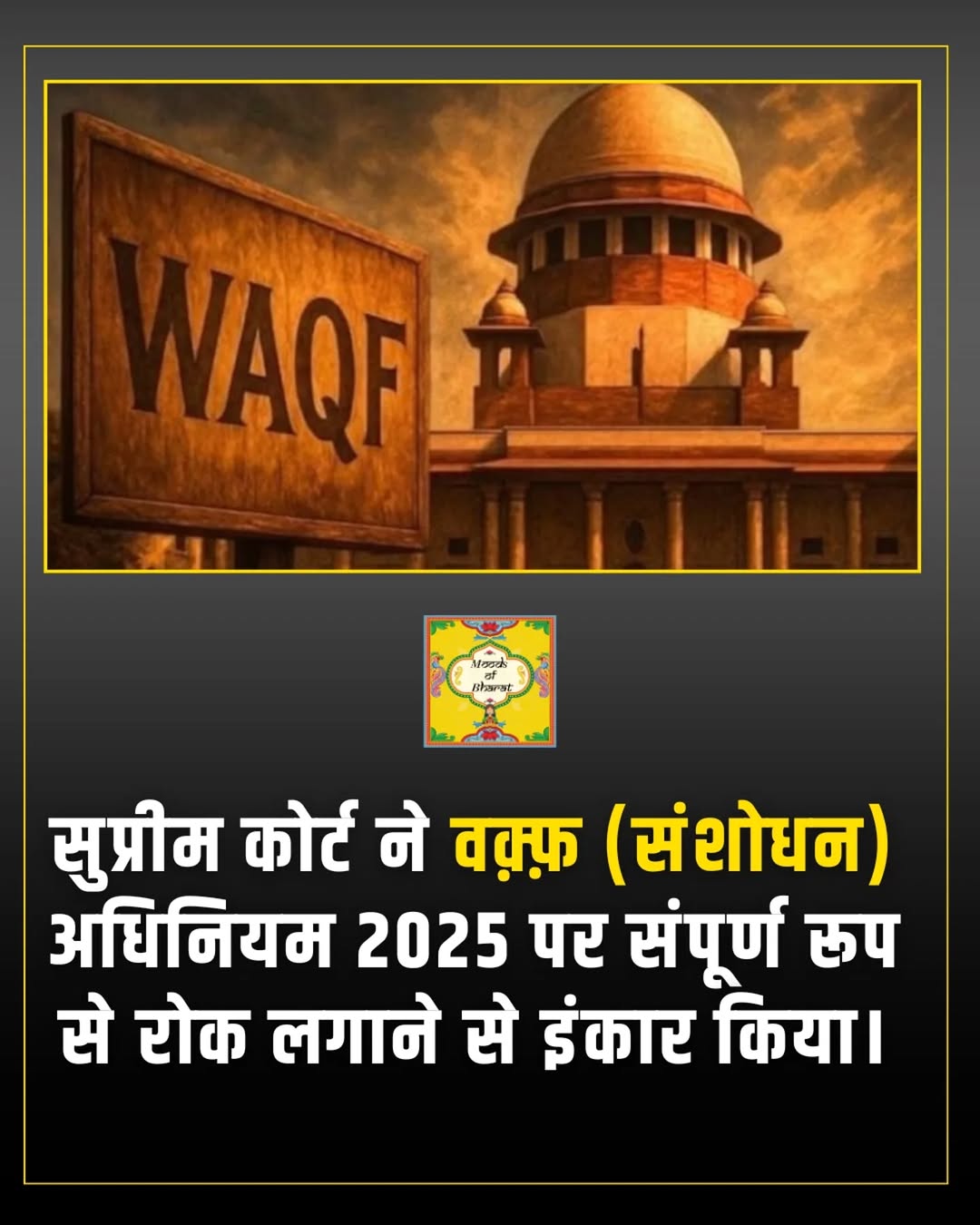 🔥 Govt Scores Legal Win! The Supreme Court has refused to grant a stay on the Waqf Amendment Act, dismissing petitions challenging the legislation. This move is being seen as a major victory for the Centre in a politically sensitive case. Follow @moodsofbharat 🇮🇳 #BreakingUpdate #WaqfAmendment #SupremeCourt #waqf #sc #news #indianews #explorepage #update