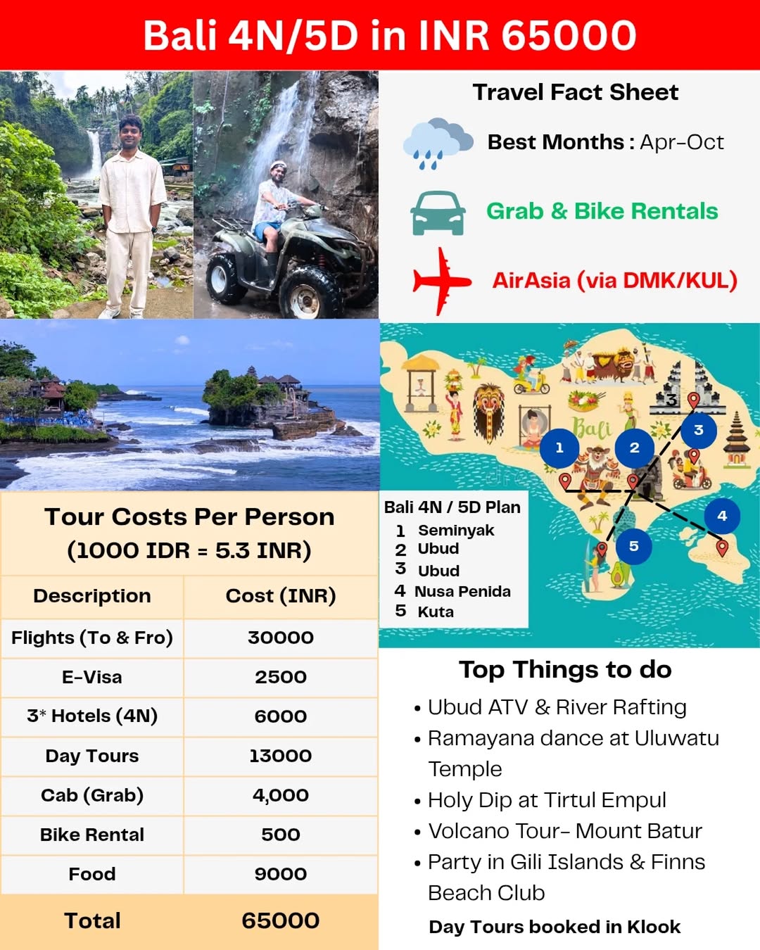 Planning a trip to Bali, Indonesia? Here's a detailed 4N 5D travel guide and cost breakdown via AirAsia. With affordable living costs and budget-friendly hotels, Bali is perfect for Indians seeking an international getaway at just Rs 65K per person. Hotels booked in Agoda app Flights : Airasia Tours , Sim Card : Booked in Klook app Evisa : Indonesia immigration site #bali #Indonesia #airasia #AirAsiaTravelSquad #chennaitravelblogger #itinerary #Indiantravelblogger