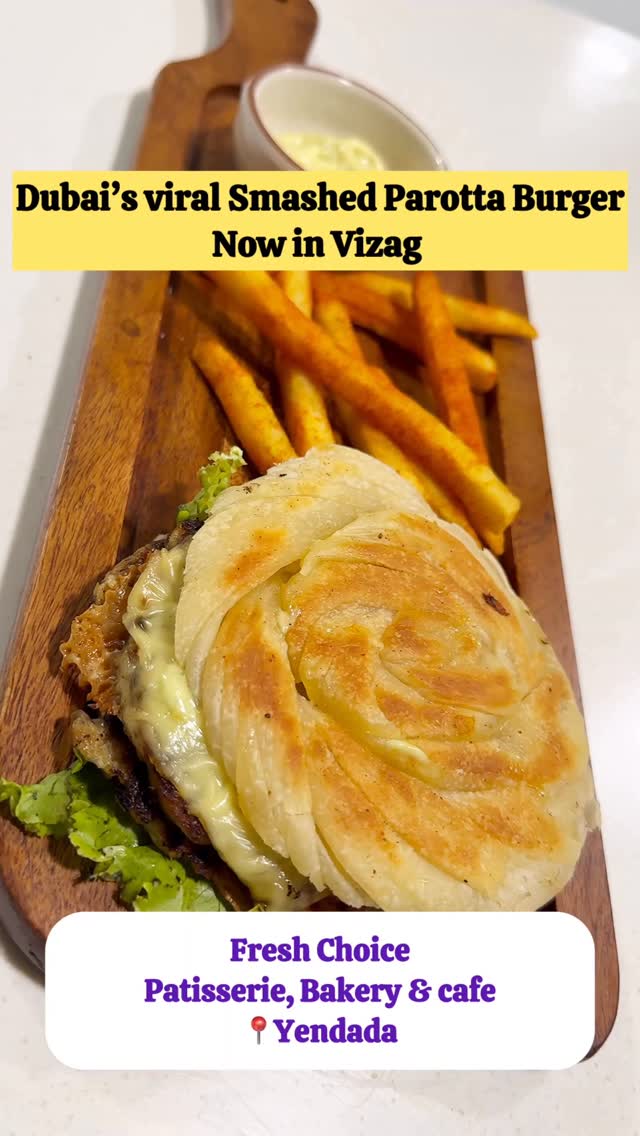 Vizag’s favourite bakery brand @freshchoice_in now in Yendada Delicious dishes and desserts in an aesthetically pleasing cafe and quick service🥰 Must try: Coffee Experience corner , Chicken 65 Puff Pizza , Desserts Location: @freshchoice_in , Next to MK Gold Coast, Yendada In frame: Chicken Smashed Parotta Burger, Chicken 65 Puff Pizza, Orange cold Brew, Royal Frappe, Black Forest Indulgence Toast , Gelato, Fish Fingers and Rocher Shake. #vizagvlogs #vizagfoodvlogs #vizagstreetfood #streetfoodvlog #vizagdiaries #vizagcity #visakhapatnam #hyderabaddiaries #hyderabadfoodie #vizag #vizagfoods #vizagfoodblogger #vizagfoodvlogger #vizagblogger #vizagphotography #streetfood #foodblogger #brew #viralreels #trendingreels #freshchoicevizag #freshchoice #vizaggastronomy #parottasmashburger [ Food vlog, vizag, visakhapatnam, food blogger, vizag food vlogs, vizag street food, desserts, trending, viral, Parotta smashed burger, Dubai viral, cafe, coffee]