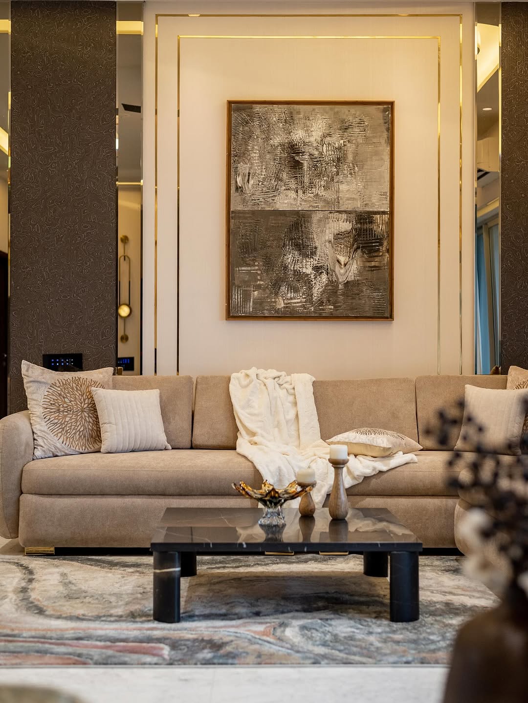 Understated luxury in every detail ✨ . . . . . . . . . #luxurylivingroom #luxuryroomdesign #luxurylivingroomdesign #luxurylivingrooms #luxuryfurniture #luxuryfurnituremumbai