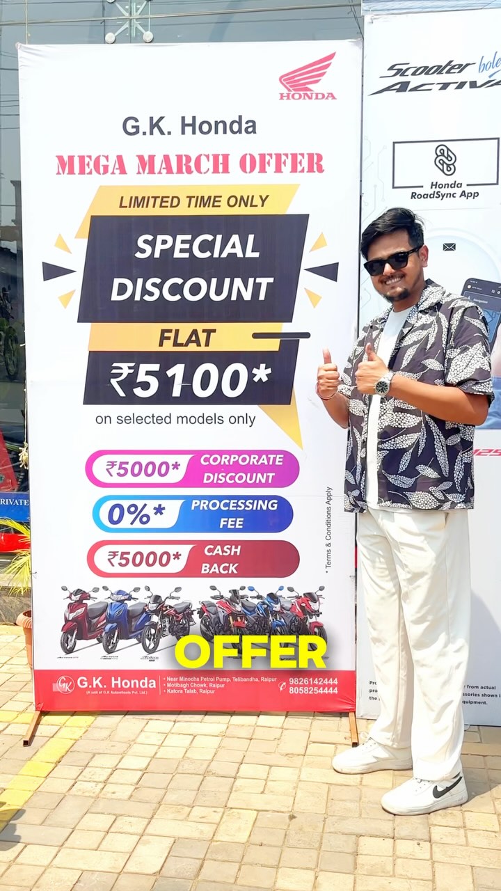🔥 *मेगा मार्च ऑफर | सिर्फ GK Honda पर* ! 🔥 🚀 अपने पसंदीदा Honda 2-Wheeler पर पाएं *.₹14,999** तक की बचत!* 🚀 💥 *Shine 100 – ₹12,101 तक का लाभ* ! ⚡ OBD2-A मॉडल – *₹5,100** का इंस्टेंट डिस्काउंट! 🔄 Exchange Bonus – *₹2,000** तक का लाभ! 🎁 स्क्रैच और जीतें धमाकेदार इनाम! 📍 GK Honda, रायपुर – सीमित स्टॉक, जल्दी करें! 📞 अभी कॉल करें: 8058254444