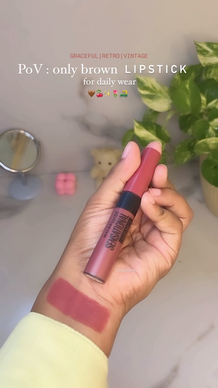 Comment for “ SHADE “ for the shade name of the Lipstick ✨🌷 . . . . #lipstick #explorepage #makeupreels #lipsticklover #reels #explore #makeuplover #makeup #lipsticklover #lipstickswatch #browngirls #browngirlmakeup #nykaa #nykaabeautybook #swatches #nykaacosmetics #nykaahaul . . . . . . [ lipstick ,lipstickswatch ,lipsticklover , nykaa , nykaafinds , maybellinelipstick , makeup, lipstickwatches , dailywearlipstick, browngirllipstick] . . Shade- Best Babe 06