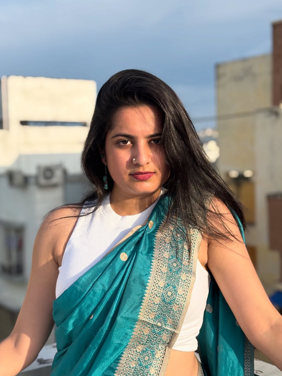 No Monday blues, just me in a blue saree under the endless blue sky. 💙