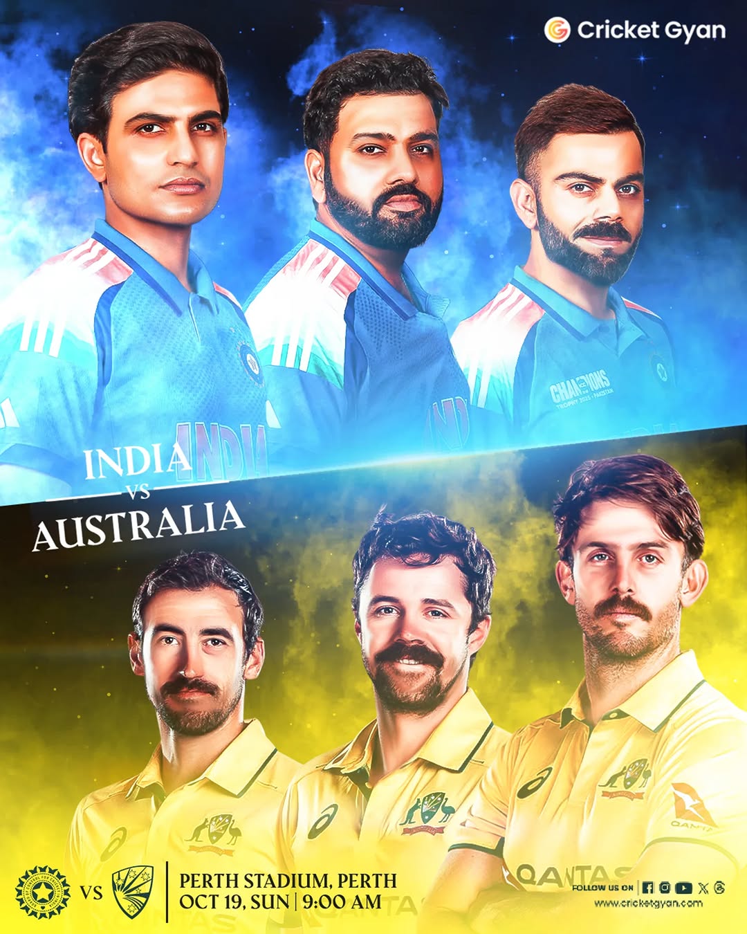 𝐁𝐀𝐓𝐓𝐋𝐄 𝐃𝐎𝐖𝐍 𝐔𝐍𝐃𝐄𝐑 🇮🇳⚔️🇦🇺 The stage is set, the lights are bright, and the rivalry is reborn! 🌏🔥 India and Australia — two powerhouses, two proud legacies, one battlefield: Perth Stadium🏟️ . . . India vs Australia, Odi Series, Cricket Series, RohitSharma, ViratKohli, ShubmanGillCricket News, Cricket Update, Cricketers, Cricket Gyan