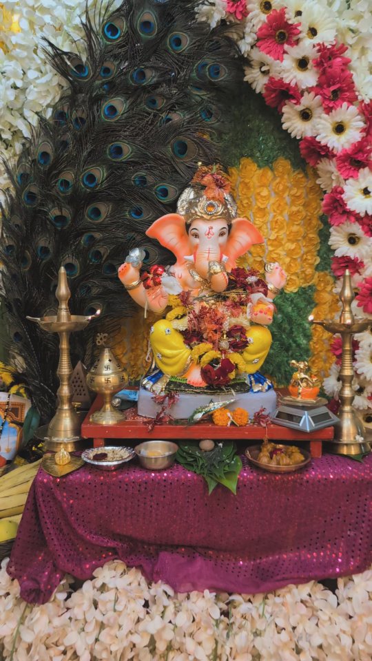 He is here.. 🙏 . . #ganpati #ganeshchaturthi #ganeshfestival #ganeshchaturthi2025 #festivalsofindia #indiaculture #festivaldecor #ganpatidecoration #ganeshachaturthi #goafestival #indiafestivals #flowerdecorflowerdecor