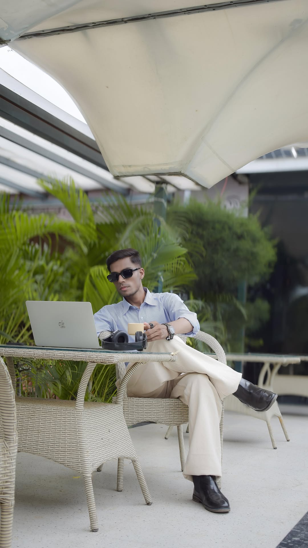 BELIEVE - because your mindset shapes your lifestyle. The grind is real, but so are the rewards. A fashionable man in a light blue shirt and cream trousers sits confidently by a poolside table, sipping coffee, with a laptop in front of him and the word ‘BELIEVE’ displayed behind. In frame @vikashmalviya9 #Believeln Yourself #PoolsideVibes #LuxuryLifestyle #FashionInfluencer #MensStyle #OOTDMen #ClassyVibes #ContentCreatorLife #StylishMen #InfluencerLife #VisionBoard #DapperStyle #CoffeeAndConfidence #MensFashionIndia #LifestyleCreator #DreamBigWorkHard #GQStyle #UrbanLuxury #DigitalCreator [ Lifestyle, coffee date, mens wear, classy, stylish men, influencer, luxury lifestyle, men style]
