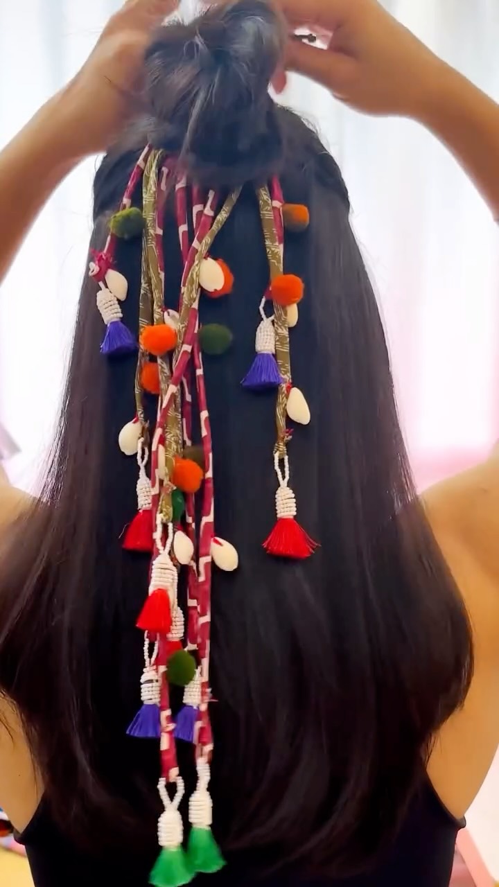 I could’ve made the same thing with the colourful threads as well but using old fabrics leftovers to make something new has its own charm.. #9days9diys #sustainablefashionindia #diyhairaccessories #navratri2025 #navratridiy