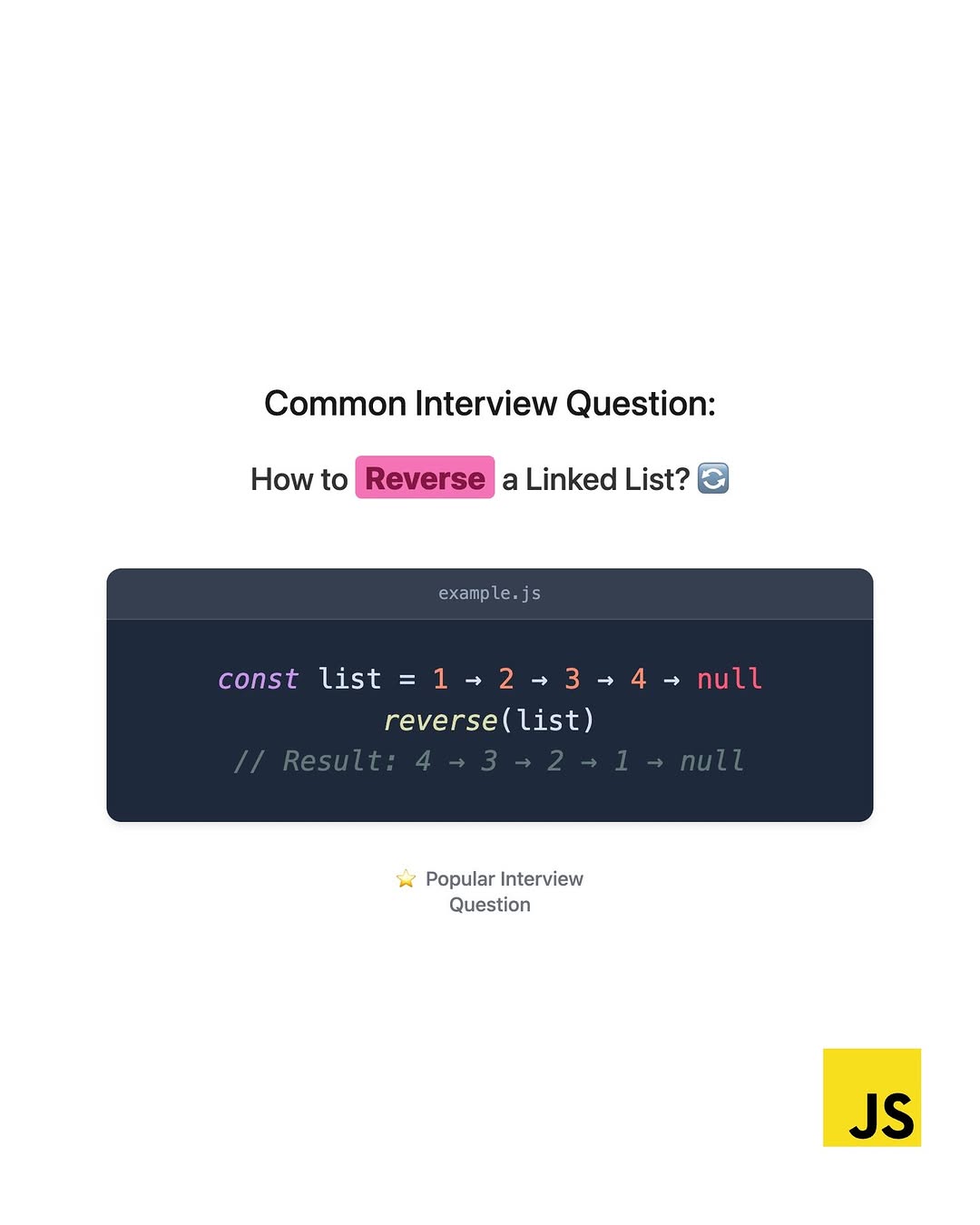 Reversing a linked list is a classic interview question & a must-know for every coder! 💡 👉 Here’s how: 1️⃣ Use 3 pointers: prev, current, next. 2️⃣ Flip the pointers & move forward until the list is reversed! 💻 Try it out & level up your data structure skills! Follow @codingwithjd for more coding challenges! 🔥 #JavaScript #CodingTips #DataStructures #LearnToCode #LinkedList #Programming #TechTips #CodingWithJD