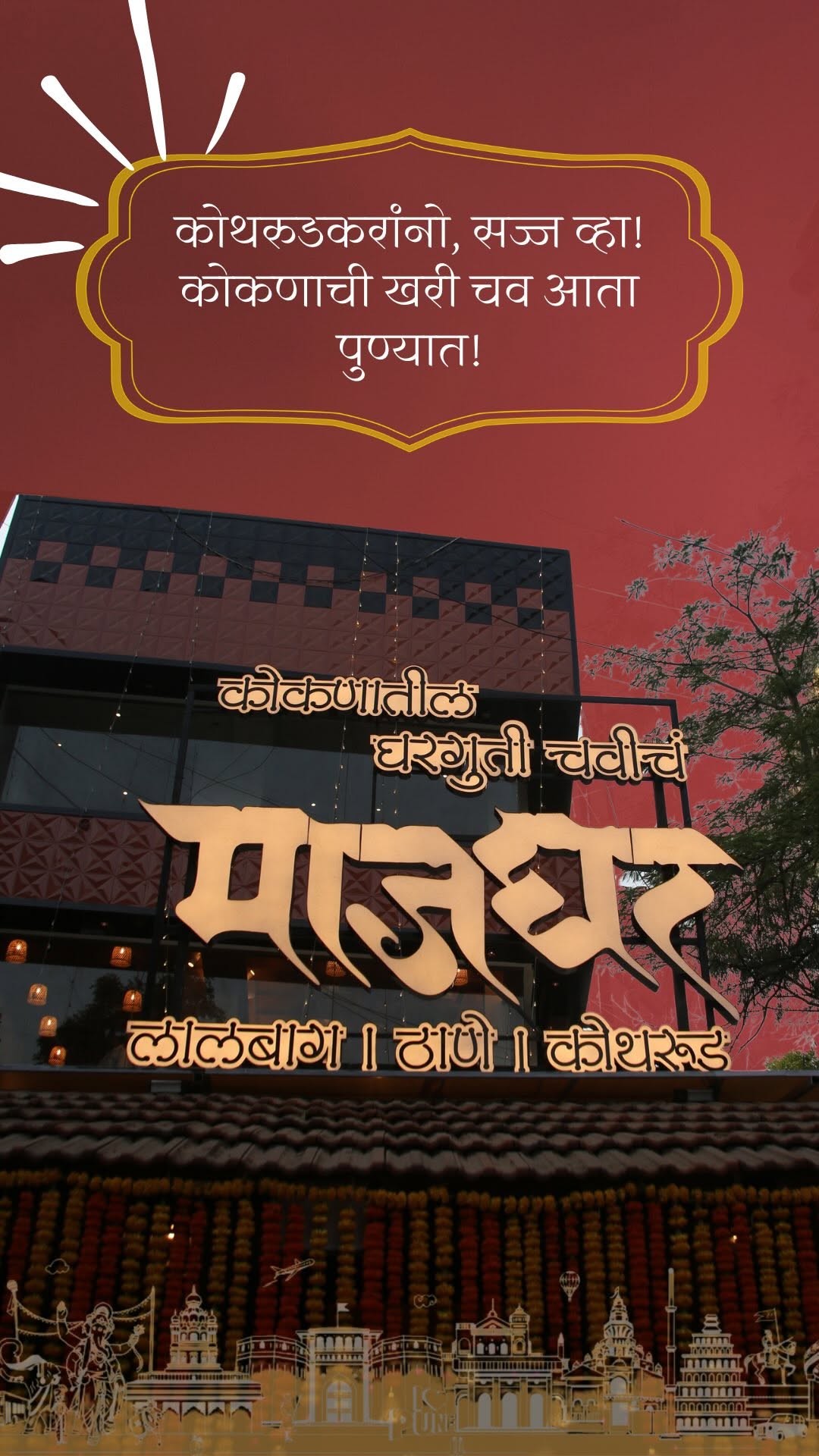 कोथरुडकरांनो, सज्ज व्हा! 🤩 कोकणाची खरी चव आता पुण्यात! 😋🍤 मुंबईतल्या दोन outlets नंतर, माजघर घेऊन आलंय कोकणी आणि Seafood मेजवानी खास पुणेकरांसाठी !!! 🙏🏽 📍Survey No. 121, 6, 122, Vishwashanti Marg, Tarangan Society, Rambaug Colony, Kothrud, Pune, Maharashtra 411038