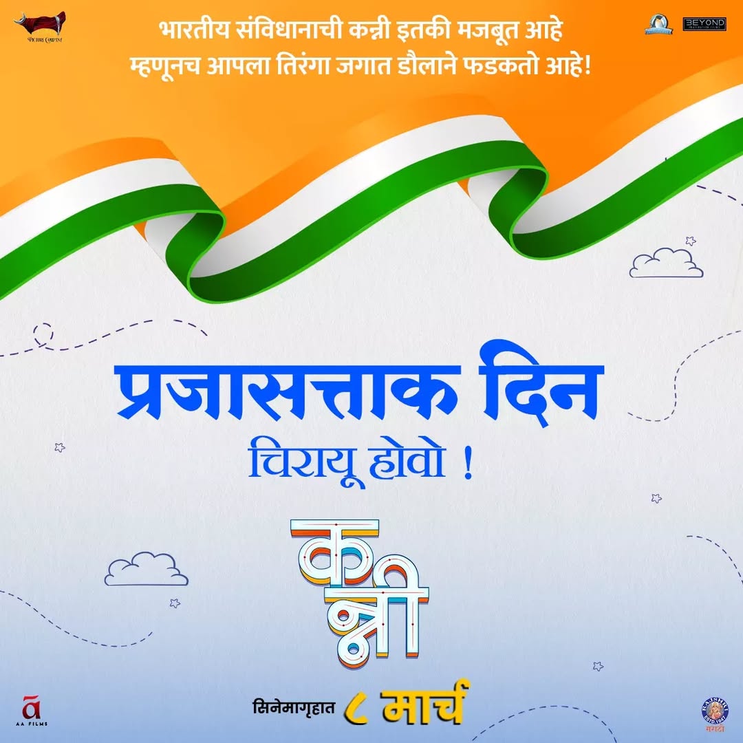'कन्नी' चित्रपटाच्या संपूर्ण टीमकडून सर्व प्रेक्षकांना प्रजासत्ताक दिनाच्या हार्दिक शुभेच्छा! #Kanni #KanniOn8March #RepublicDay #RepublicDayIndia