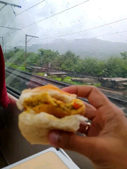 Rains + Train + Wada Pav = 😍🚂👌 #travel #trainjourney #wadapav #mumbai #monsoon