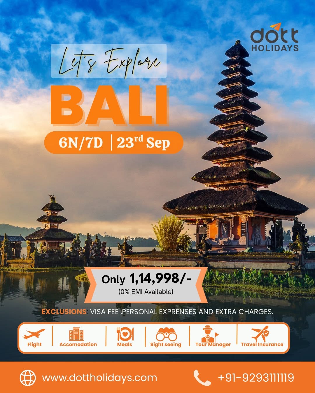 🌺 Bali Tour (6N/7D | 23rd Sep) ✨ Escape to the tropical paradise of Bali with Dott Holidays! 🏝️ From serene beaches to stunning temples and cultural wonders, Bali is the perfect mix of relaxation and adventure. 💰 Just ₹1,14,998/- with 0% EMI Available. ✅ Flights | ✅ Accommodation | ✅ Meals | ✅ Sightseeing | ✅ Tour Manager | ✅ Travel Insurance 📞 Call: +91-9293111119 🌐 Book now: www.dottholidays.com #BaliTrip #BaliVacation #ExploreBali #BaliWithDott #DottHolidays #BaliTour2025 #TropicalEscape #BaliParadise #BeachVibes #TravelWithUs #LuxuryTravelIndia #HolidayWithDott #IslandVibes #BaliBound #AdventureInBali