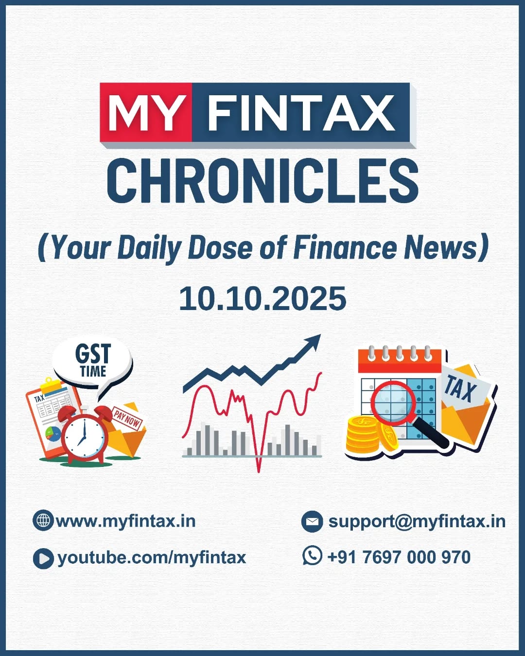 🗞MYFINTAX CHRONICLES 🗓10.10.2025 Stay ahead with your daily dose of the latest finance news with MYFINTAX CHRONICLES! Get the latest upd@Meta AI ates on economic outlook, legal developments, banking and finance, investments and innovation, financial markets, corporate watch, international affairs, and tax and compliances Economic Outlook H2 → Second Half (of the financial year) FY26 → Financial Year 2025–26 RBI → Reserve Bank of India Legal Developments Sebi → Securities and Exchange Board of India ONGC → Oil and Natural Gas Corporation CB-OS/2 → Cambay Offshore Basin Block (Oil & Gas exploration block) Banking & Finance CFO → Chief Financial Officer EPFO → Employees’ Provident Fund Organisation UPS → Unified Pension Scheme FoF → Fund of Funds H-1B → U.S. Non-Immigrant Work Visa (Specialty Occupations) Corporate Finance cr → Crore (₹1 crore = 10 million) OFS → Offer For Sale IPO → Initial Public Offering PE → Private Equity mn → Million Sebi → Securities and Exchange Board of India (repeated for approvals context) International Affairs US → United States WTO → World Trade Organization Tax & Compliances GST → Goods and Services Tax Investments & Finance SWF → Sovereign Wealth Fund FPI → Foreign Portfolio Investor SWAGAT-FI → Special Window for Attracting and Guiding Allotted Investors – Foreign Investors KYC → Know Your Customer BAF → Balanced Advantage Fund Nifty-500 → National Stock Exchange 500 Index P/E → Price-to-Earnings Ratio IT → Information Technology Financial Markets Nifty IT → Information Technology Index of NSE (subset of Nifty) cr → Crore (repeated, market cap context) Nasdaq → National Association of Securities Dealers Automated Quotations (U.S. Tech Stock Exchange) Fed → Federal Reserve System (U.S. Central Bank) Brent → Benchmark crude oil grade (North Sea) Follow @myfintaxofficial for more such finance tips and updates #FinanceIndia #StockMarketIndia #IndianEconomy #EconomicOutlook #Sensex #Nifty #MarketNews #FinancialNews #InvestingIndia #InvestmentUpdates #RBI #Sebi #GSTUpdates #IPOIndia #EPFO #MSMEFinance #NBFC #BalancedFunds #SovereignWealthFund #FPI #VCIndia #PrivateEquity #GlobalMarkets #OilPrices #GoldPrices #USMarkets #WTO #