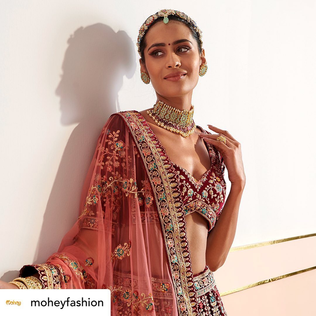 Posted @withregram • @moheyfashion Are you falling in love with this sweetheart neckline too? Get our Wine Velvet Bridal Lehenga stitched into the attire of your dreams for your wedding day! Visit your nearest Mohey store today. In association with @missindiaorg #Mohey #DulhanWaliFeeling #Shopping #Brides #WeddingSeason #ModernColors #Stylish