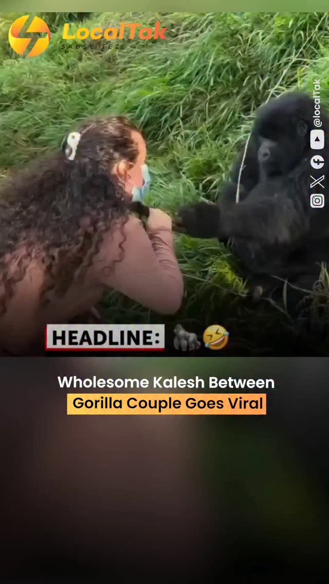 A hilarious and heartwarming moment caught on camera shows a male gorilla grabbing a girl’s hair through the glass enclosure at a zoo — only to face an instant slap from his female gorilla partner! The clip, dubbed “Wholesome Kalesh,” has left netizens amused, calling it the most relatable animal couple video ever. Even in the wild, "biwi ka danda" works like a charm! #WholesomeKalesh #ZooCoupleDrama #ViralAnimals #FunnyGorillas #RelationshipGoals #LocalTak #AnimalKingdom
