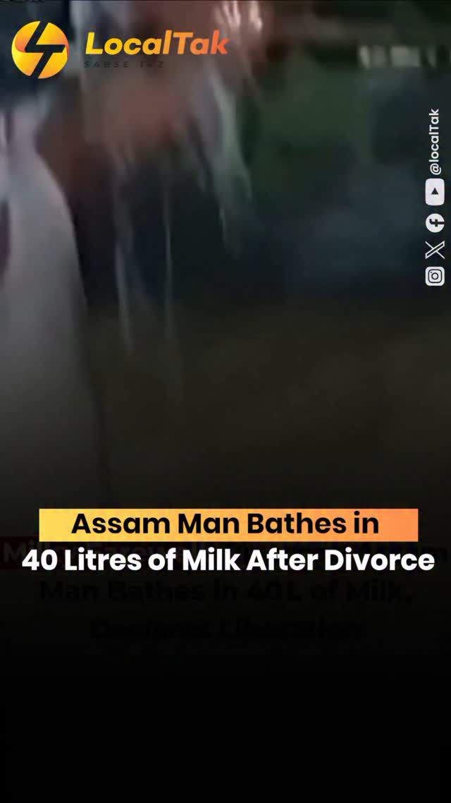 After his wife walked out with their child, Manik Ali celebrated his freedom by bathing in milk, holding a placard declaring his liberation. #Assam #DivorceRitual #ViralVideo #ManikAli #FreedomBath #BizarreIndia #SocialMediaBuzz #LibertyWire