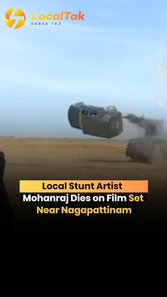 Nagapattinam, Tamil Nadu — We have sad news from our area. Stunt artist Mohanraj, aged 52, has tragically died during a film shoot for 'Vettuvam' near Nagapattinam. He reportedly had a heart attack while doing a car stunt where the car crashed. The accident visuals are now online, showing the shocking moment. This loss has deeply affected our local film community and many others. Police are investigating how this happened. Our deepest condolences go out to Mohanraj's family during this very difficult time. #nagapattinam #tamilnadu #localnews #stuntartist #filmshooting #communitygrief #stuntsafety #vettuvam #localtak