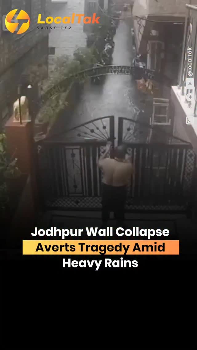 On July 13, 2025, a wall in Jodhpur’s Paota area collapsed during heavy rain, damaging several vehicles but injuring no one, thanks to timely evacuation. The incident, captured on camera and viral on social media, shows a man narrowly escaping as the wall crumbled near his gate. IMD warned of extreme rainfall (≥21 cm) in 18 Rajasthan districts from July 13-15, with five rain-related deaths reported, including drownings in Bhilwara, Rajsamand, and Beawar. Localtak demands better infrastructure, from exam cheating scandals to protecting lives! #Localtak #JodhpurCollapse #jodhpurrains #wallcollapse #imdwarning #rajasthannews