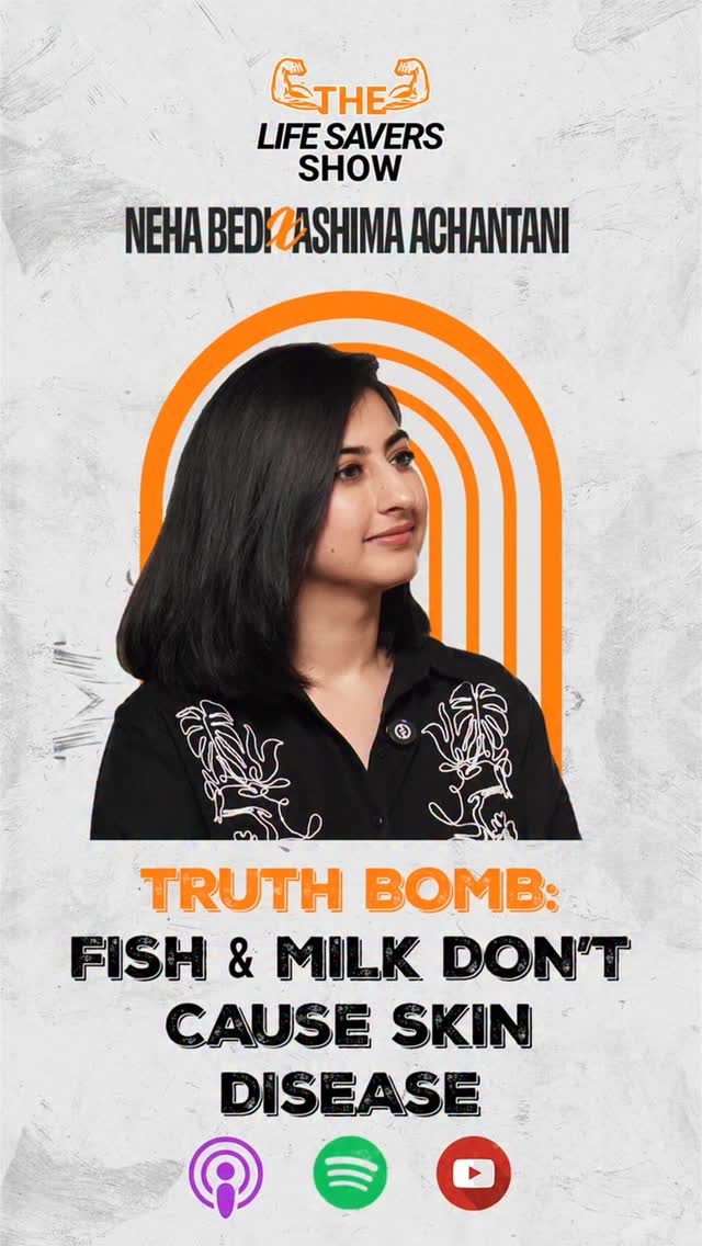 Do you also believe this ‘age-old’ myth? There is no scientific evidence to prove this statement. 🐠 🥛 Go watch the entire podcast with Nutritionist Ashima Achantani. 🔗 in bio . She is absolutely amazing at debunking food myths. And all of them are backed by #science . #health #gyan #fish #vitiligo #milk #ayurveda #awareness #education