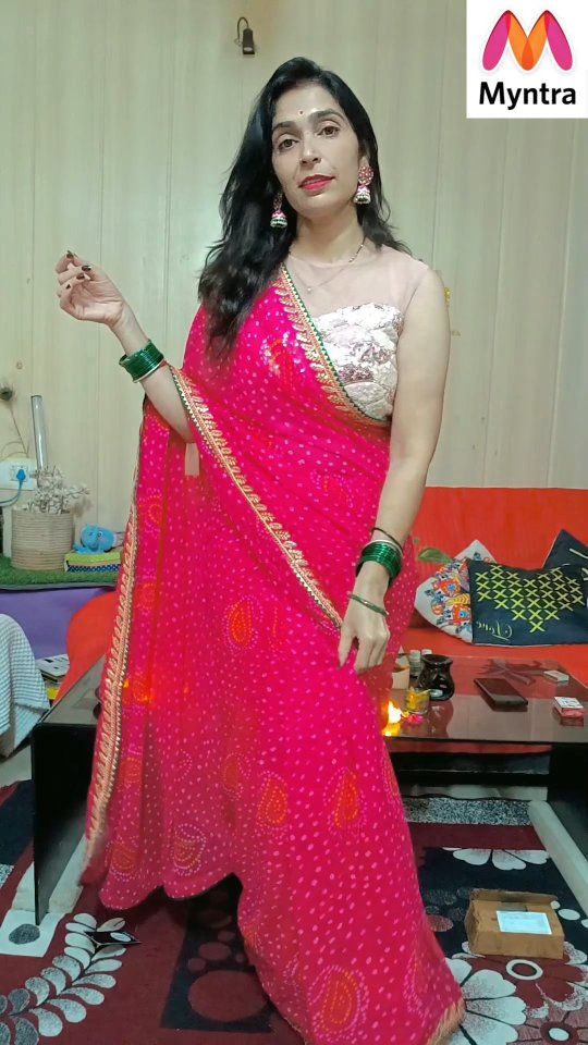 beautiful bandhne saree💞 under 1500 , comment for link.. #weddinglook #weddingseason #sareecollection #myntrafashion #haulpack