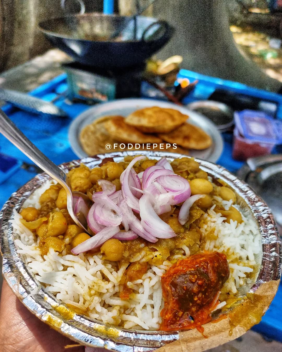 Chole Chawal , Aam ka Achaar & Onions.... Simple yet blissful Meal 😋 Just for Rs.20/- . . ✅Follow @foddiepeps ✅Turn on post notifications for more updates . . #cholechawal #cholachawal #streetstylecholechawal #cholachawal #comfortfood #lucknowfoodies #lucknowfoodblogger #lucknowfood #lucknowfoodie #lucknowigirl #lucknow