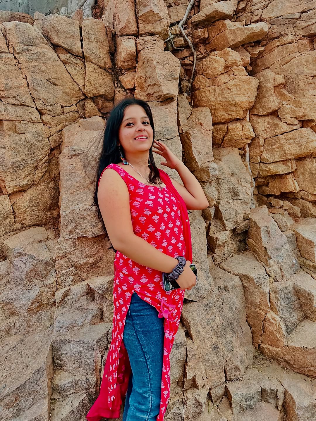 Rocks behind, grace ahead✨🌺 #graceinthewild #RawBackdropRealBeauty #RockTheLook #NaturalVibes #EleganceInFrame #DesiVibes #OutdoorAesthetic #SlayingSimple #UnfilteredBeauty #InstaGrace #RusticBackdrop #BoldYetBeautiful #rocksolidvibes