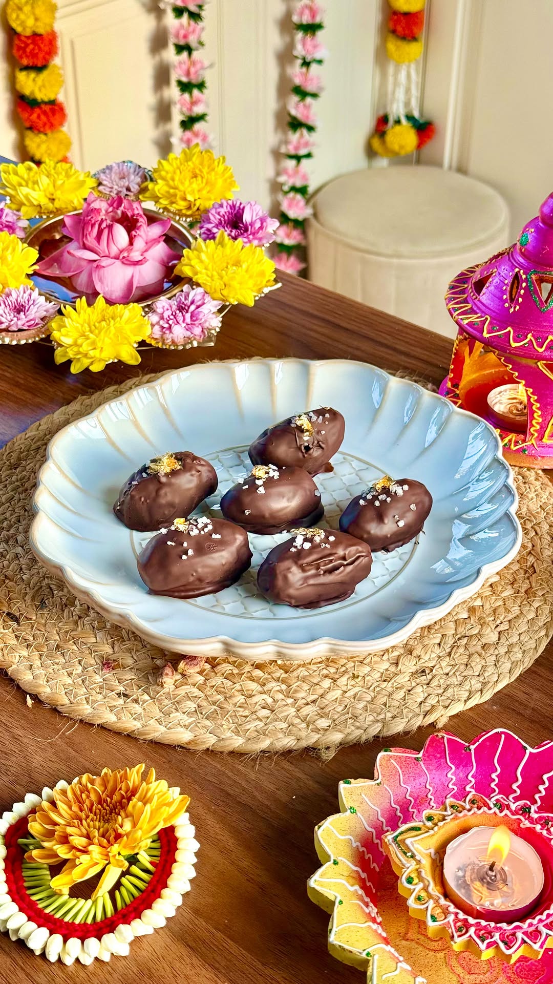 Chocolate coated Dates 🍫✨ This four-ingredient Indian recipe is sure to be a hit this Diwali because, without adding any extra sweetness 🙈 Recipe Ingredients: Jumbo Dates 20pcs 55%-75% Dark Chocolates Pista 100gms Garnish: Sea Salt Golden Work Refer the video above for detailed Recipe 💯 . . . . . #chocolate #dates #dessert #indianfood #sweets #reelitfeelit #reelsinstagram #omkarpawar 808520741