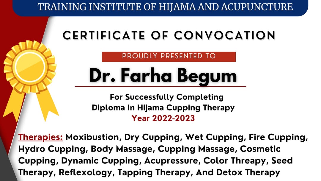 Student's Convocation Certificate Ladies Hijama center near me Hijama for PCOS in Hyderabad Hijama for infertility for women Best female Hijama therapist in India Sunnah Hijama for women Hijama therapy for irregular periods Hijama for hair fall for ladies Hijama for hormonal imbalance in women Hijama cupping therapy for skin glow Hijama center for women in [City] Hijama for migraine for women Hijama for women near me (used internationally) Islamic Hijama for ladies Cupping therapy for sisters only Sunnah-based Hijama for female health Hijama therapy for women’s wellness Hijama for painful periods Women-only Hijama clinic Online Hijama course for women Hijama Diploma course for ladies Certified Hijama course online India Hijama cupping therapy training for women Best Hijama institute for sisters Hijama therapy diploma for females Islamic Hijama training course online Hijama course for NRI women Hijama certification program India How to become a female Hijama therapist Ladies Hijama course with certificate Learn Hijama therapy at home #LadiesHijama #HijamaForWomen #HijamaForPCOS #HijamaForInfertility #SunnahHealingForSisters #FemaleCuppingTherapist #HijamaForHairFall #HijamaTherapyIndia #CuppingForWomen #WomenOnlyHijama #HijamaClinicHyderabad #HijamaForPeriods #HijamaReliefForWomen #HijamaCourseForLadies #OnlineHijamaTraining #HijamaDiploma #LearnHijama #HijamaCertificationIndia #HijamaForNRI #SistersOnlyTraining #CuppingTherapyCourse #WomenHealingWomen #IslamicHealingCourse #HijamaMasterDiploma #HijamaInstituteIndia “How Hijama Cures PCOS Naturally – Women’s Healing Story” “Hijama for Ladies in India – Full Treatment Explained” “Step-by-Step Hijama Therapy Course for Sisters | Online Certified” “Best Hijama Points for Migraine in Women (Islamic Method)” “Ladies! Become a Hijama Therapist – Full Diploma Training” “Hijama Cupping for Female Health – Real Before/After” “How to Learn Hijama Therapy at Home (For Women Only)” “Top 5 Benefits of Hijama for Irregular Periods” “NRI Sisters: Do Hijama Course Online from India!”