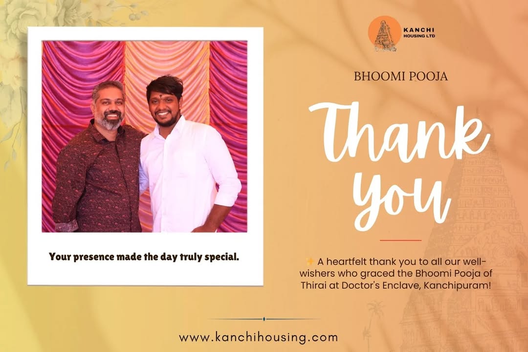 🌟 A Heartfelt THANK YOU! 🌟 Dear @palanimuruganrpms. & Aravind We’re overwhelmed with gratitude to everyone who joined us for the Bhoomi Pooja of Thirai @ Doctor Enclave – and a special thanks to those who brought along your families! ❤️ Your presence made the event truly unforgettable, filling the day with joy, blessings, and positive energy. This is just the beginning of an exciting journey, and we’re thrilled to have you with us as part of the Thirai family. Thank you once again for being a part of this auspicious beginning! We're so grateful to have shared it with you. ✨ Stay tuned – big things are on the way! With love and appreciation, T. Mayilvaganan & the Kanchi Housing Team 🌟 மனமார்ந்த நன்றி! 🌟 "திரை @ டாக்டர் என்கிளேவ்" பூமி பூஜை நிகழ்வில் உங்கள் மதிப்புமிக்க வருகையால், அந்த நாள் நினைவில் நிறைந்ததாயிற்று. 🏡💐 உங்கள் குடும்பத்துடன் வந்து ஆசீர்வதித்த அனைவருக்கும், எங்களது இதயம் கனிந்த நன்றி! ❤️ நாம் சேர்ந்து கொண்ட இந்த ஆரம்பம், எங்கள் பயணத்தின் மிக முக்கியமான கட்டமாகும். இந்த திட்டத்தின் அடுத்த அத்தியாயங்களை விரைவில் உங்களுடன் பகிர அந்தியாபாரம்! ✨ இது தொடக்கமே... இன்னும் பல சிறப்புகள் வர இருக்கின்றன! அன்புடன், T. மயில்வாகனன் மற்றும் காஞ்சி ஹவுசிங் குழுமம் #kanchi #housing #kanchipuram #BhoomiPooja #realestateforsale #doctor #doctorenclave #residentialcommunity #villa #villas #houseandhome #construction #plot #plotforsale #landsales