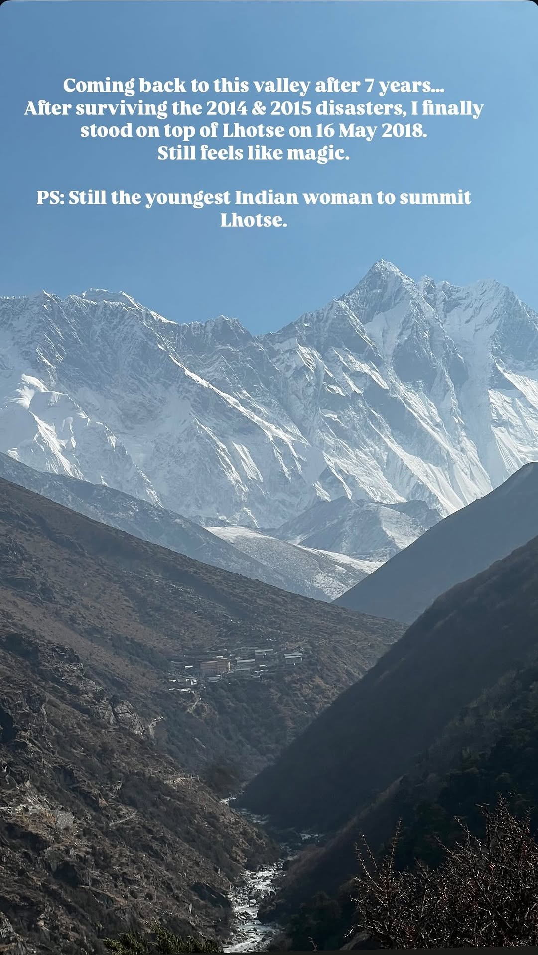 Coming back to this valley after 7 years… After surviving the 2014 & 2015 disasters, I finally stood on top of Lhotse on 16 May 2018. Still feels like magic. PS: Youngest Indian woman to summit Mt. Lhotse — a title I’ve held since 16th May 2018. . #MountainClimbing #lhotse #ebc #ebc2025 #priyankamohiteforlhotse #NeverGiveUp #ClimbingGoals #AdventureAwaits #SummitDreams #PeakPerformance #MountainLife #HighAltitude #ClimbEveryMountain #ExpeditionLife #NatureChallenge #OutdoorAdventure #viralvideo #igreach #foryou #instadaily #doubletapifyourelate #beautifuldestinations #mountain #girlwithdreams #MountainPassion #chasingdream #réel