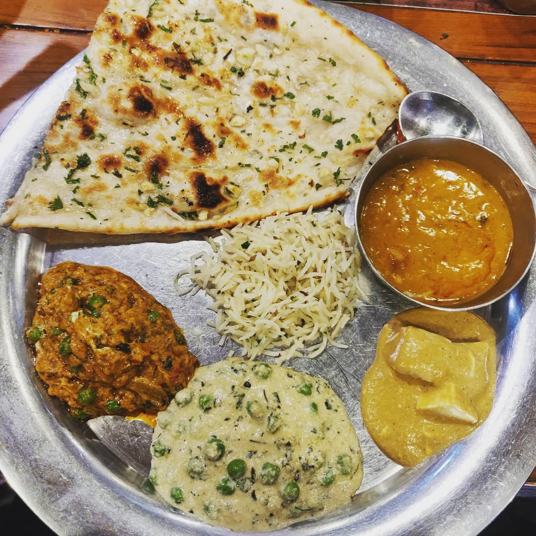 Can't get over My plate full of Happiness 😍 A variety of my favourite dishes, in a single Frame❤️ . . In Frame: Garlic Naan, Dal Fry, Baigan ka bharta, methi Matar malai, Shahi paneer, Rice and some sirke wala pyaz which us missing im my plate😍
