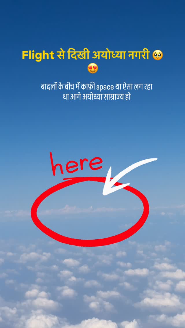 अयोध्या से आते हुए फ्लाइट में दिखी स्वर्ग की अयोध्या नगरी आकाश में दिखी अयोध्या नगरी स्वर्ग जैसी लग रही थी 🥹❤️ ऐसा लग रहा था मानो स्वर्ग में पहुँच गया हूँ ! क्या आपने भी ऐसा कभी महसूस किया है? #ayodhya #rammandir #swarg #flight #clouds #ram #ayodhyadham #clouds #viral #viralreels❤️