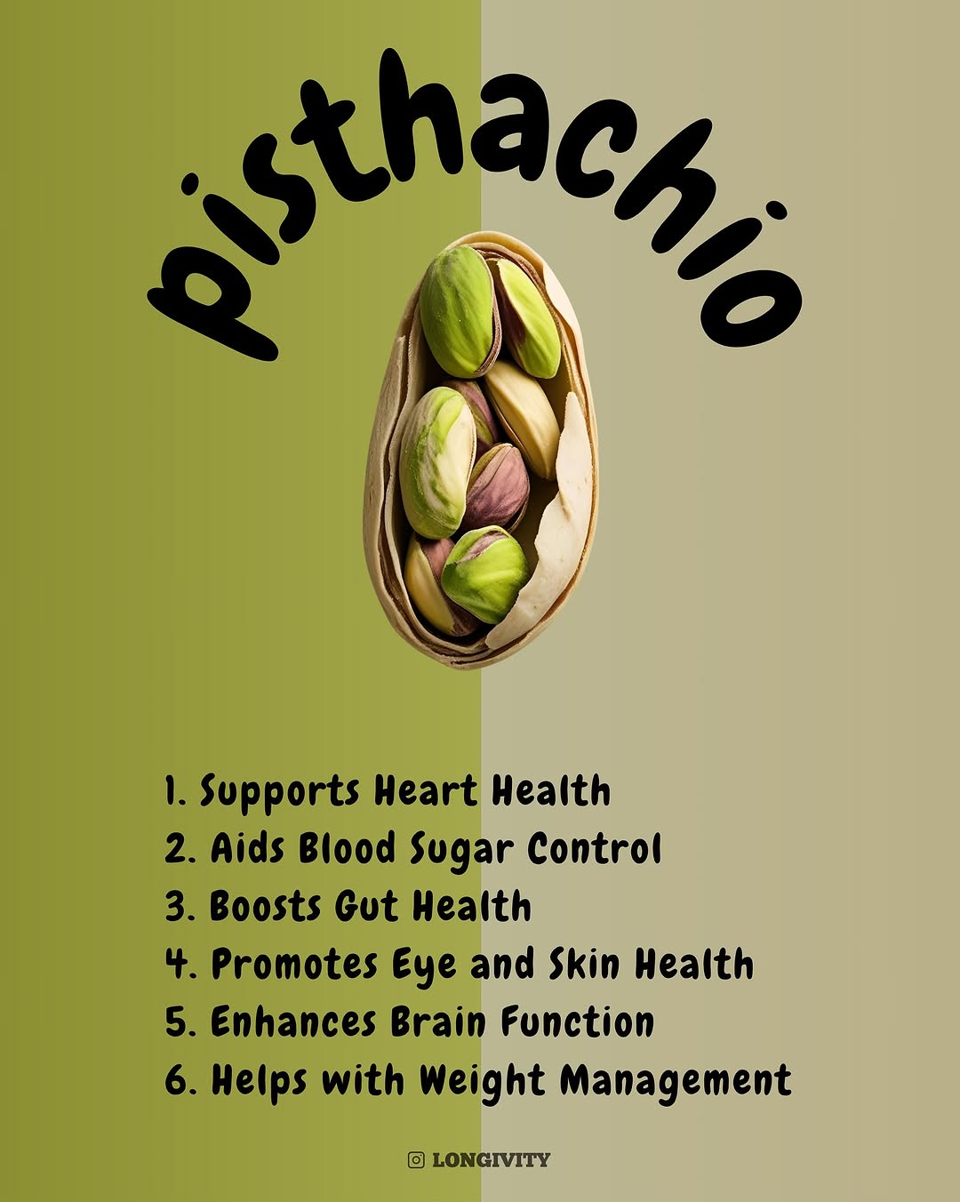 Pistachios are a powerhouse of plant protein, fiber, and healthy fats, making them great for energy, satiety, and weight management. They support heart health, help regulate blood sugar, and improve gut health. Rich in antioxidants, they also protect eye and skin health, while vitamin B6 and potassium boost brain function and muscle recovery. Smart, satisfying, and nutrient-packed. #longivity #PistachioPower #PlantProtein #HealthyFats #FiberRich #HeartHealth #BloodSugarBalance #GutHealth #AntioxidantBoost #EyeHealth #SkinHealth #BrainFood #MuscleRecovery #VitaminB6 #PotassiumPower #SmartSnacking #WeightManagement #NutrientDense #HealthyLiving #Superfood #EatWellLiveWell