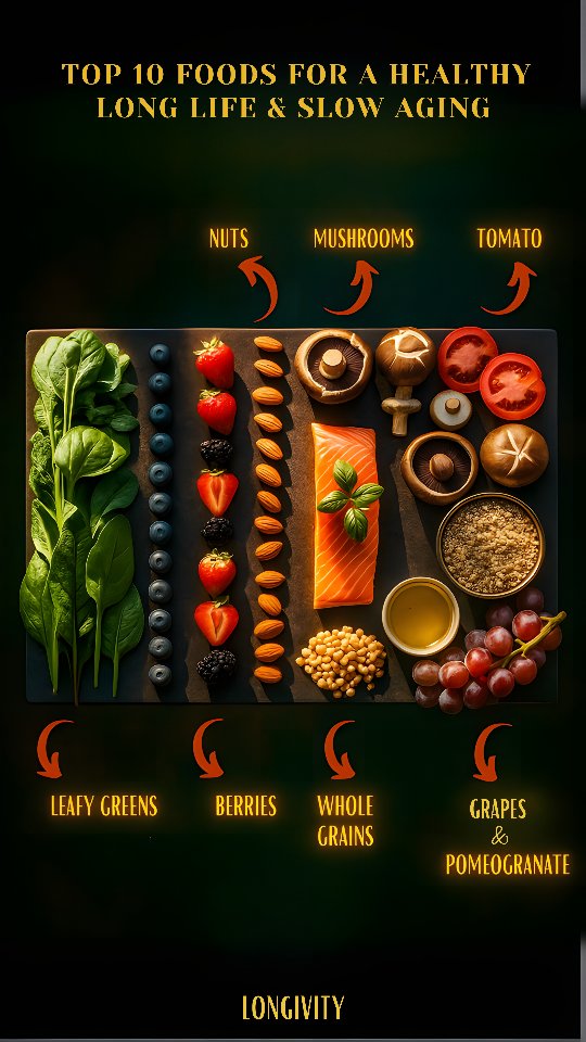 Most people fear aging… But the real fear should be aging fast. Wrinkles, weak immunity, brain fog, disease — they don’t come with age… They come with inflammation, oxidative stress, and nutrient-poor diets. But here’s the truth: You can age slower, live longer, and stay sharp — if you eat right. These 10 science-backed foods protect your brain, skin, heart, and DNA. Add them to your plate — and let food be your anti-aging formula. 🌿🥗🧠#longivity #longevityfoods #antiagingdiet #eatforlongevity #slowaging #healthspan #nutrientdense #bluezones #liveyoungerlonger #functionalnutrition #healfromwithin #india #healthylifestyle #gutbrainhealth #superfoods #wellnessfromwithin #lifestylemedicine #reelsviral #antiinflammatoryfoods #wellnessjourney