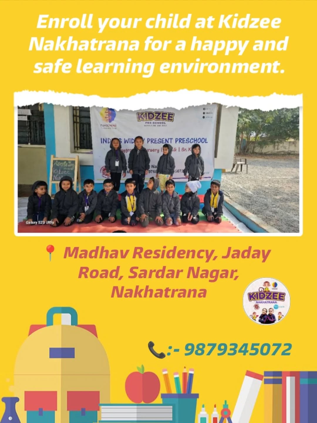Enroll your child at Kidzee Nakhatrana for a happy and safe learning environment. 📍 Madhav Residency, Jaday Road, Sardar Nagar, Nakhatrana 📞 9879345072