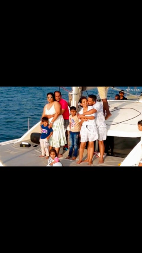 "Yacht vibes with my favorite people! 💕 When hubby sneaks a kiss mid-reel, making it even more special. ❤️✨ #insta #instadaily #instareelsviral #viral # yachtlife # couplegoal #familyvacation #familytime #romanticmoments❤️ #love you too the moon and back #boolywoodvibes #husbandlove #vacationmode #happyfamily #traveldiaries #couplereels