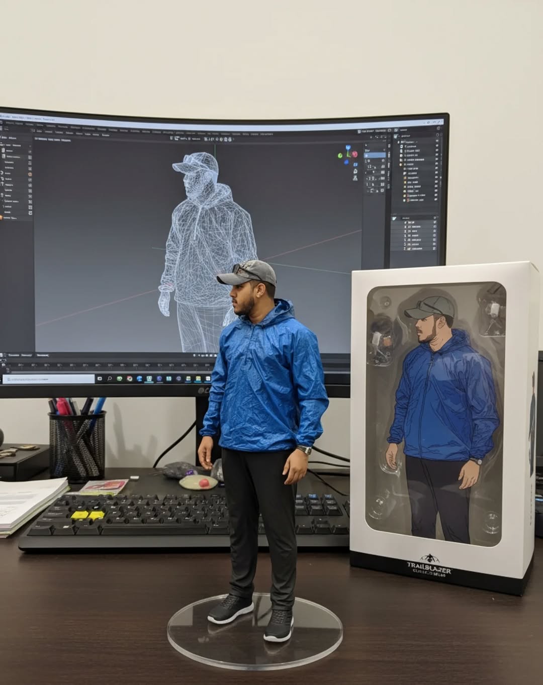 Use this prompt on Google Gemini for this type of Cool edit. 😍 Create a 1/7 scale commercialized figurine of the characters in the picture, in a realistic style, in a real environment. The figurine is placed on a computer desk. The figurine has a round transparent acrylic base, with no text on the base. The content on the computer screen is a 3D modeling process of this figurine. Next to the computer screen is a toy packaging box, designed in a style reminiscent of high-quality collectible figures, printed with original artwork. The packaging features two-dimensional flat illustrations.