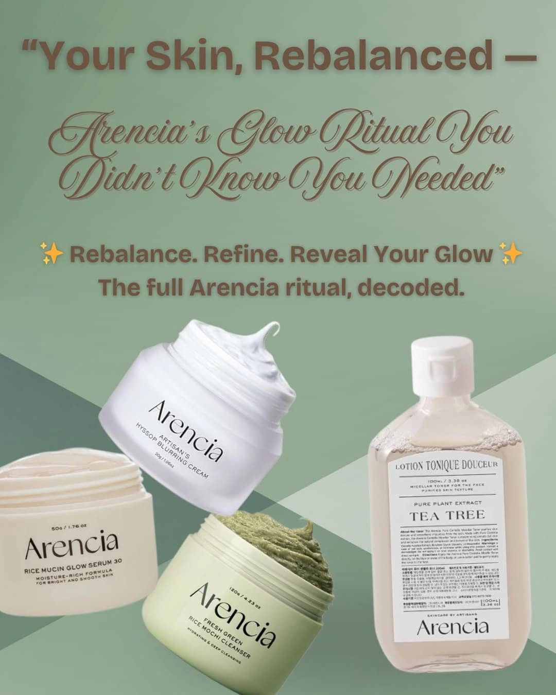 Your skin’s reset ritual, simplified. 🧴💧 No 10-step overwhelm — just a glow ritual that works. 🌸Green rice mochi cleanser 🌿 Tea Tree Toner: clears, calms, balances 🌾 Rice Mucin Glow Serum: hydrates, heals, brightens 🧁 Arencia Cream: seals moisture, softens texture Together? They rebalance your skin barrier, fade dullness, and bring out your natural glow — the kind that feels real. — 📌 Save this if your skin needs a glow reset 👯 Tag a friend who’s ready to simplify their skincare #ArenciaGlow #GlassSkinRoutine #RiceMucinMagic #TeaTreeToner #KBeautySteps #MinimalistSkincare #BarrierRepair #CleanBeautyEdit #PRWorthySkincare #ScandiGlowStyle arencia skincare routine, rice mucin serum, arencia tea tree toner, arencia cream, k-beauty routine, glass skin glow, barrier-repair skincare, minimalist skincare routine, korean skincare products, pr-worthy skincare, skincare glow ritual, skin barrier support, soothing toner for acne, glow serum for dull skin, everyday skincare essentials, sensitive skin friendly products, clean beauty korea, lightweight hydrating serum, skin reset routine, hydrating moisturizer for glow