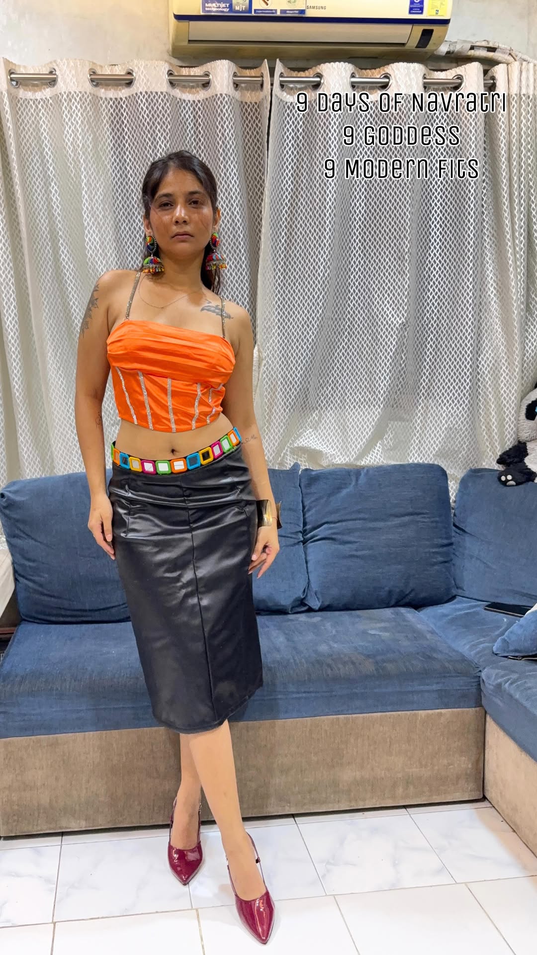 This Navratri, I wanted to celebrate not just through devotion, but through expression 💫 Each day, each goddess, each color has a meaning—woven into 9 modern outfits that reflect both tradition & my personal style. Because fashion is not just what we wear, it’s who we are 🌸💃 Day 1 of Navratri 🧡 Channeling goddess Shailputri with bold beginnings in orange. ✨ Confidence is the best color I can wear. #NavratriDay1 Top: @pratiharye Skirt: @amazonfashionin . . . . . . . . . . . #Navratri2025 #Day1Navratri #NavratriLook #ChicOutfitInspo #IndianFestiveStyle #NavratriOOTD #OrangeVibes #ModernNavratri [ Orange outfit for Navratri, Navratri Day 1 styling ideas, Modern Navratri fashion inspiration ]