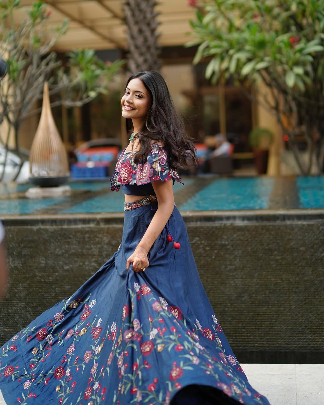 Gun Gun Guna Re🦚 Had my Cinderella moment at #AtharvkiSrishti’s wedding carnival. Spinning through the day in this stunning embroidered lehenga by Taavare, from Aza fashions - because every girl deserves her twirl worthy fairytale. Catch me matching the vibes and the florals! Outfit: @taavareclothing @azafashions Venue: @hyattregencypune Hair: @jayashreehairartist Makeup: @makeupwithshreya Jewellery: @saijewellery @exclusive_diamond_jewellery [carnival outfit, desi look, outfit I wore, indian wedding, indian look, floral lehenga, carnival lehenga, taavare, aza fashion, weddings at Hyatt] #CarnivalGlam #CinderellaVibes #TaavareXAZA #DesiDreamLook #LehengaLove #AzaFashions #SpinningInStyle #WeddingsAtHyatt