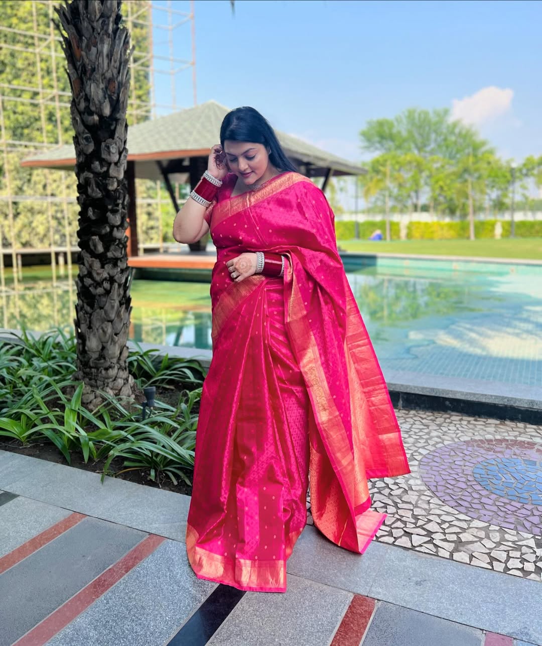 Ethnicity 💖 #newlywedmoments 🧿 #sareelove Outfit - @frontierraas Jewellery - @tanishqjewellery . . #saree #pink #traditional #chooda #red #couplegoals #newlyweds #ethnicwear #indian #bride #bridalwear #indianwedding #brunch #reelsinstagram #love #candid #makeup #ootd #style #inspo #dolledup #mrandmrs #trending #explorepage #viral #explorepage #fyp #minimal #kanjivaram