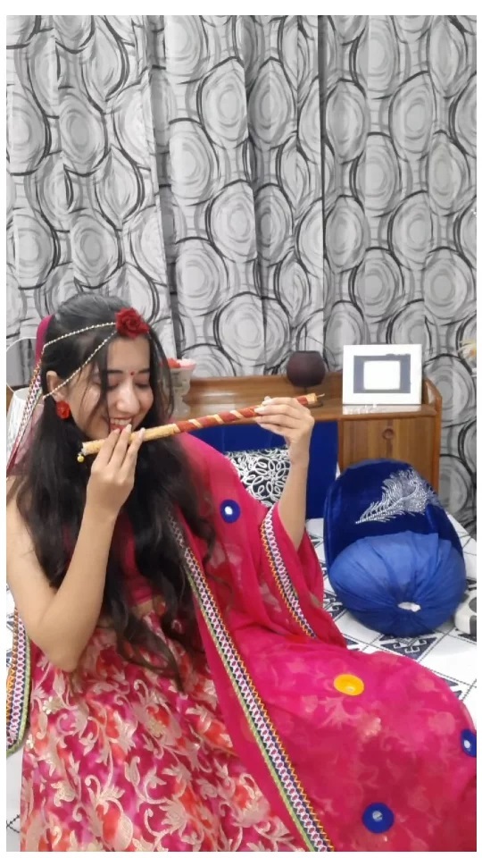Why should kids have all the fun!😂 Mai bhi banungi radha! 💜💜💙 #janmashtami #radheradhe